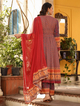 Rust Ikat Printed Pure Cotton Alia- Cut Anarkali Kurta, Pants & Dupatta Set With Coins, Kaudis & Mirror Work. Dupatta Crafted From Net Fabric. Features A V Neckline, Flared Sleeves, Slip-On Style, Partially Elasticated Waistband & One Pocket.