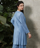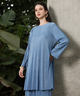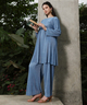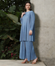 Womens Powder Blue Solid Pleated Kurta Set