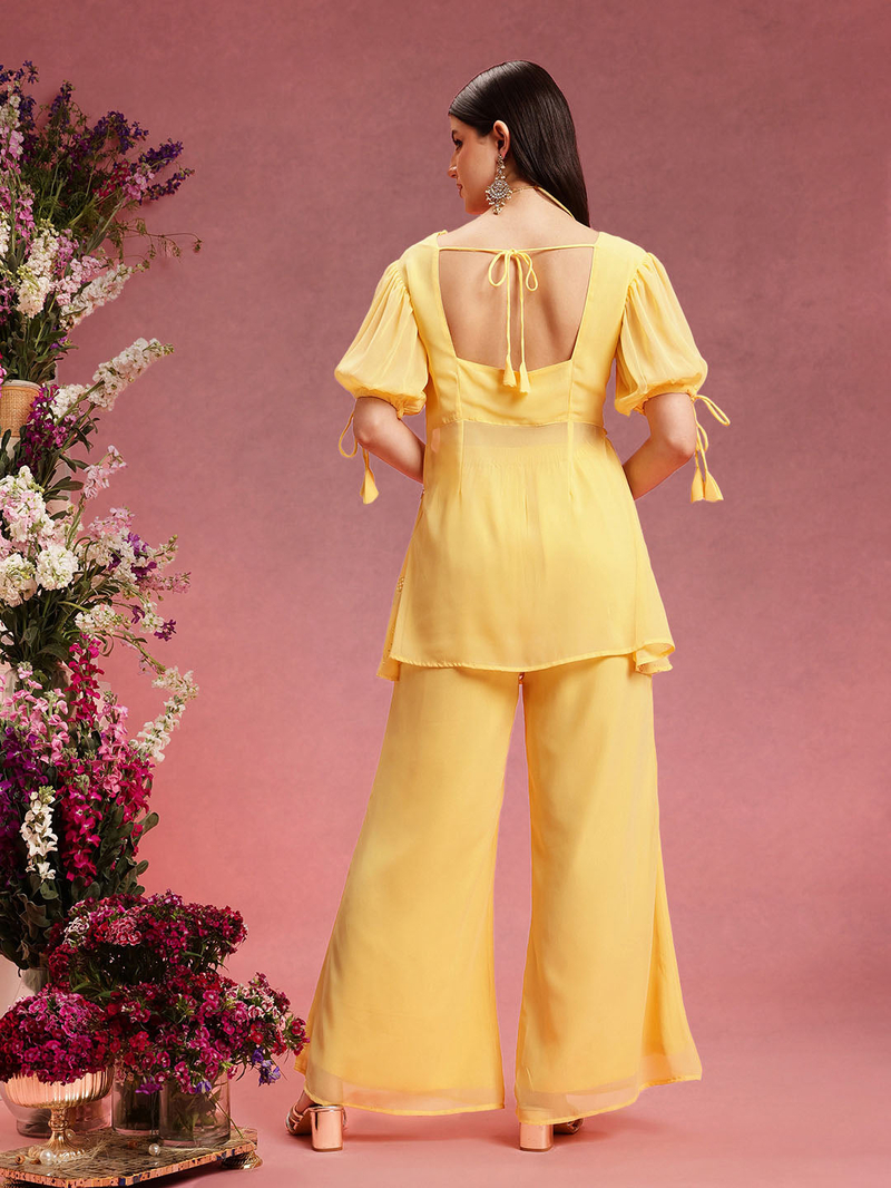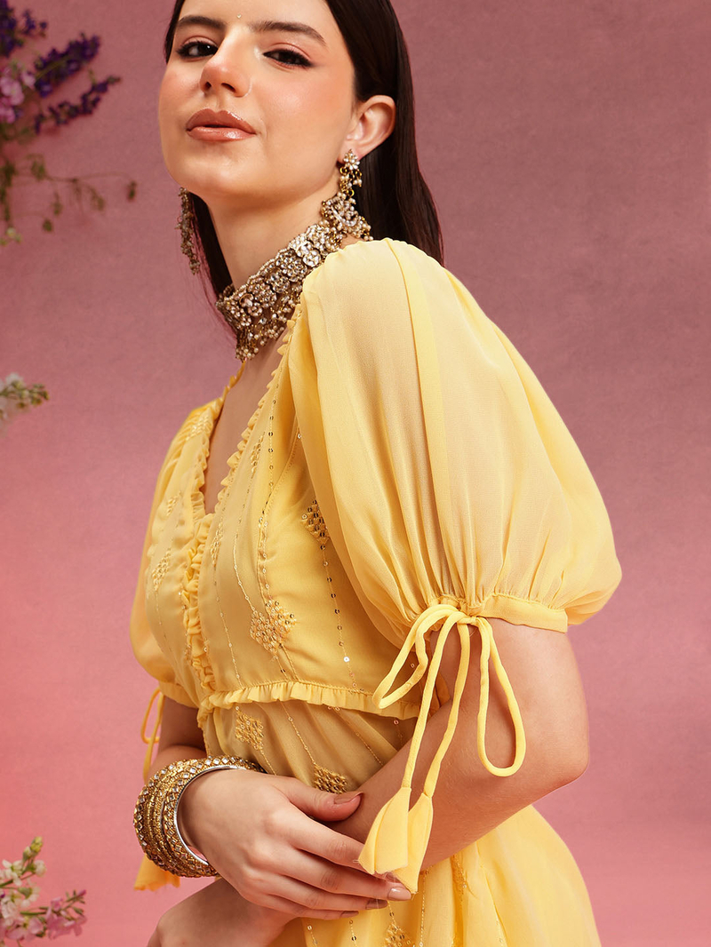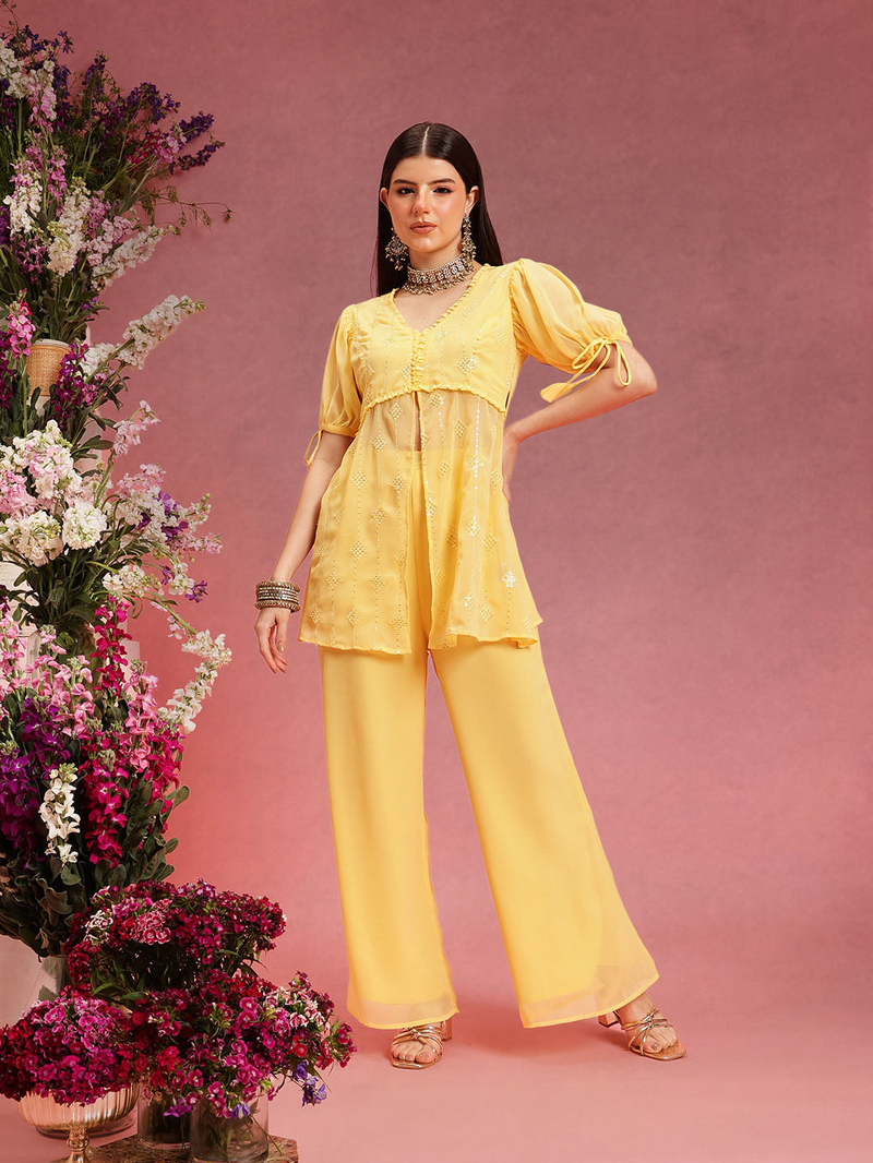 indo street Ethnic Motifs Embroidered V-Neck Sequinned Straight Kurta With Palazzos