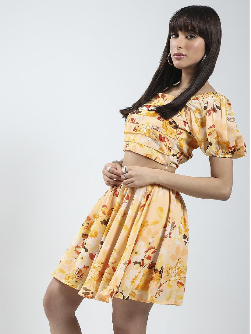 Sera Yellow Floral Top and skirt Cord-Set