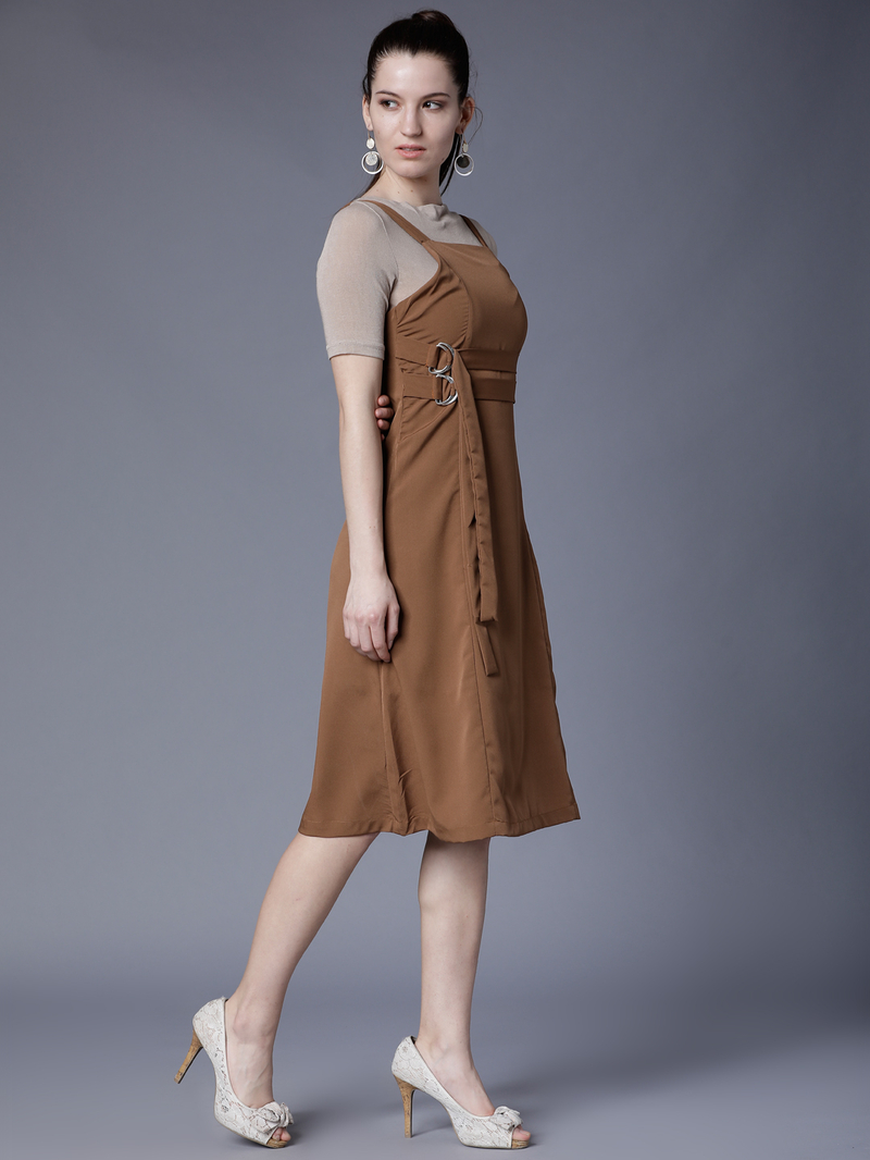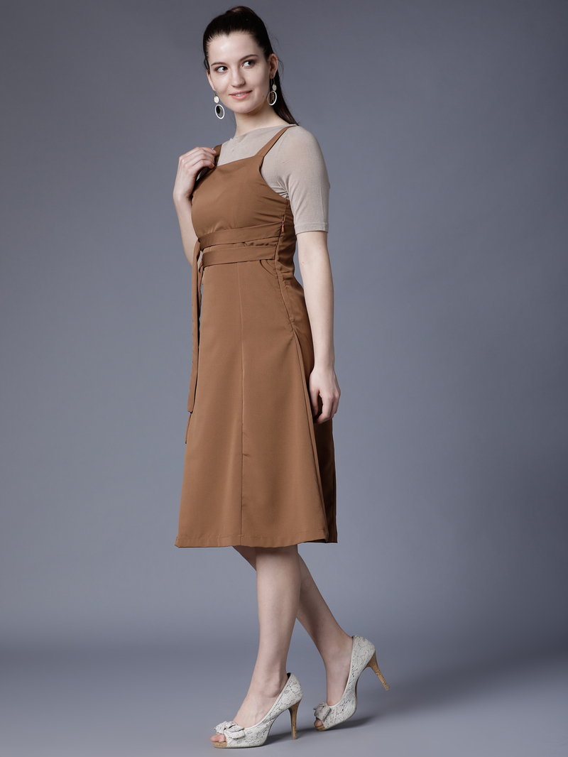 Brown Satin Fit and Flare Dress