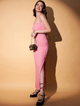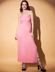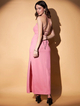 Product Details - Pink solid maxi dress, Shoulder straps, Sleeveless, Tie-up detail, Maxi length in flared hem