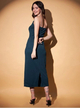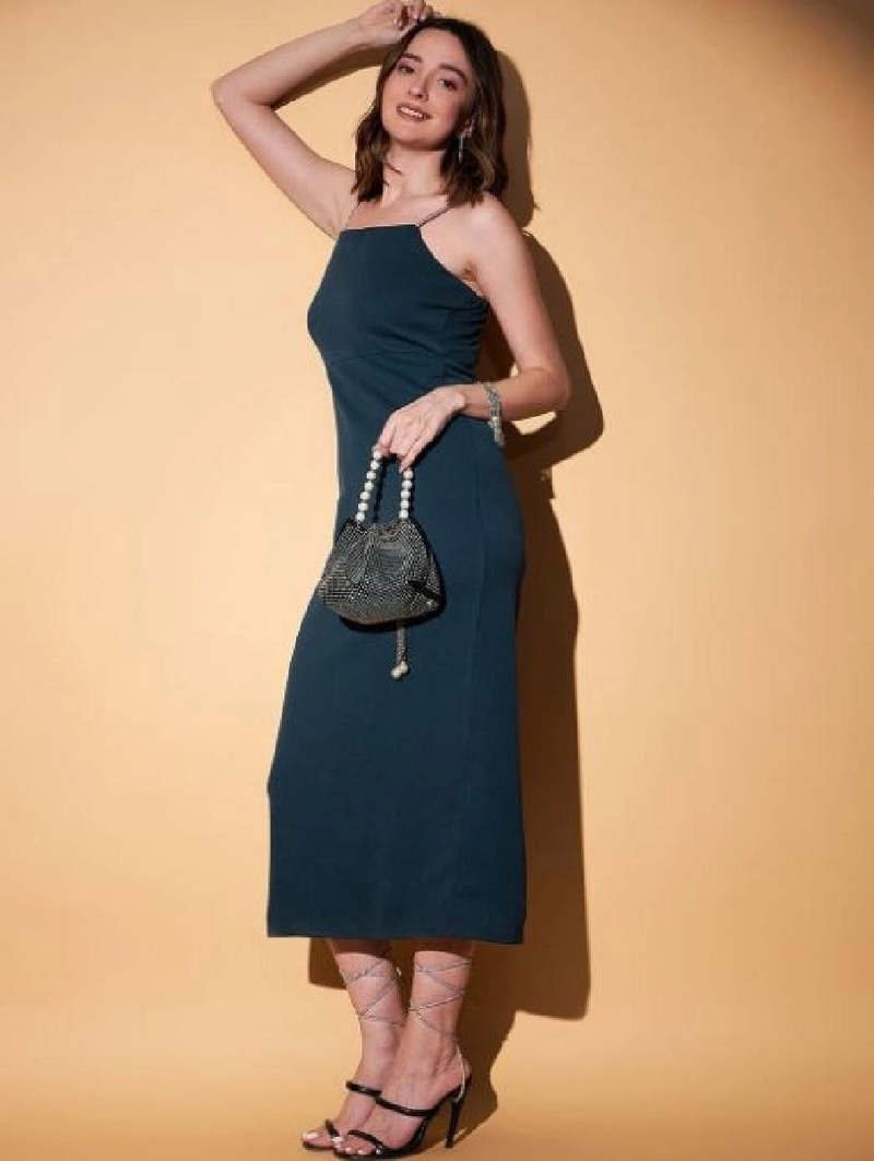 Product Details - Teal solid sheath dress, Shoulder straps, Sleeveless, no sleeves, Midi length in straight hem