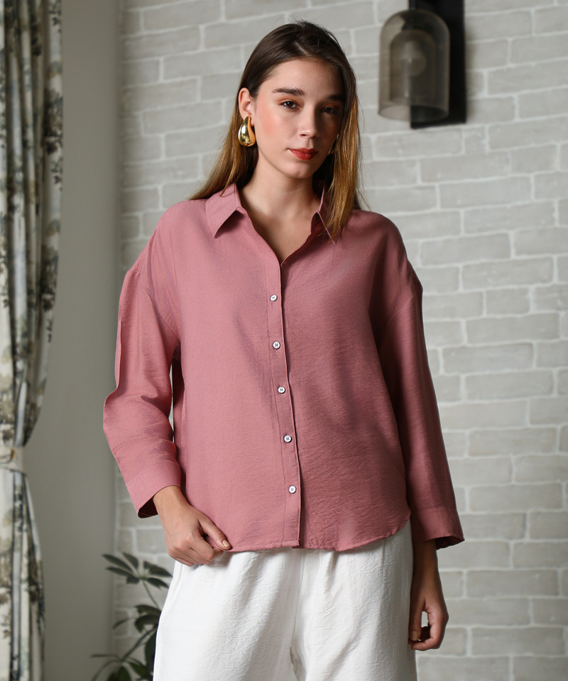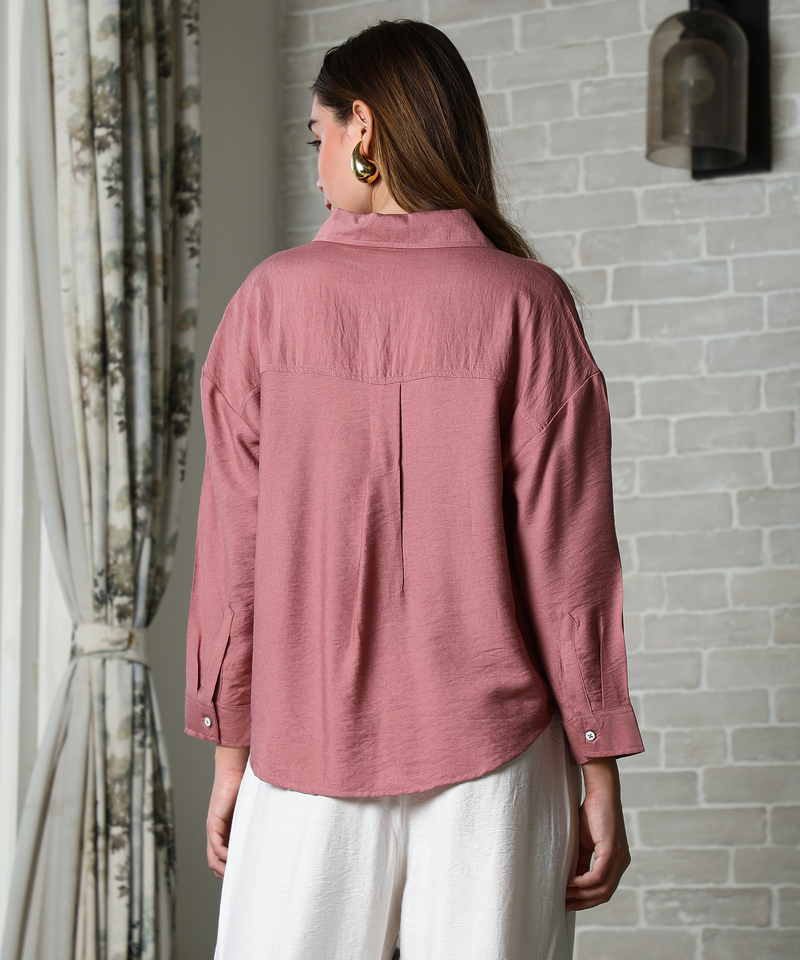 Pinacolada Womens Salmon Pink Breezy Wrinked Relaxed Shirt For Casual Wear | Spread Collar | Long Cuffed Sleeves | Button Closure | Oversized Shirt Designed With Comfortable Fit For Woman & Girls