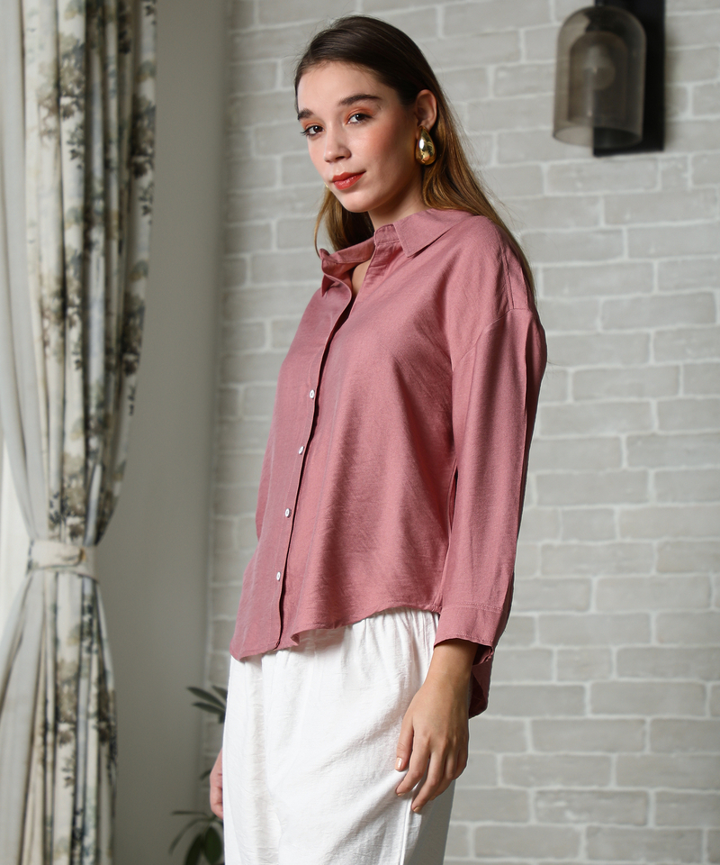 Womens Salmon Pink Breezy Wrinked Relaxed Shirt