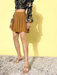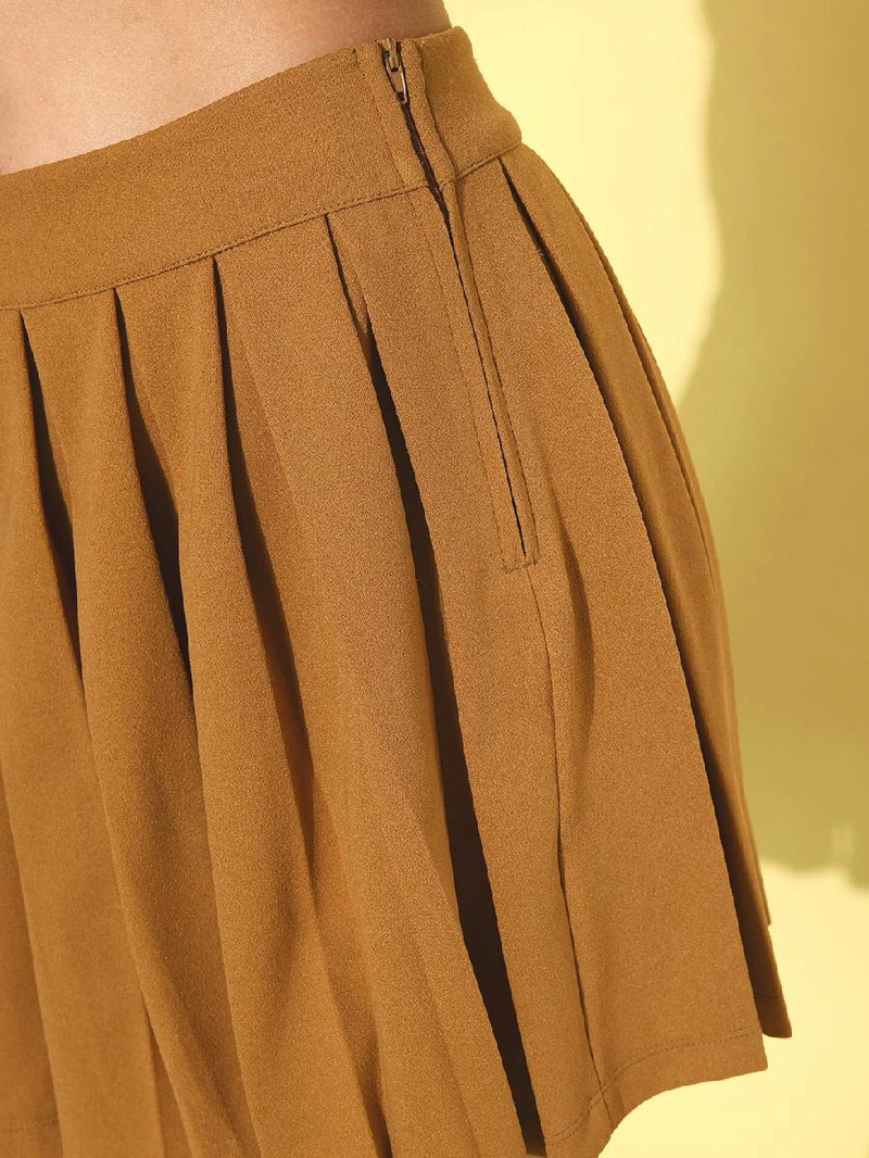 Product Details - Maroon solid pleated a-line mini skirt, has an elasticated waistband with concealed zip closure, and flared hem