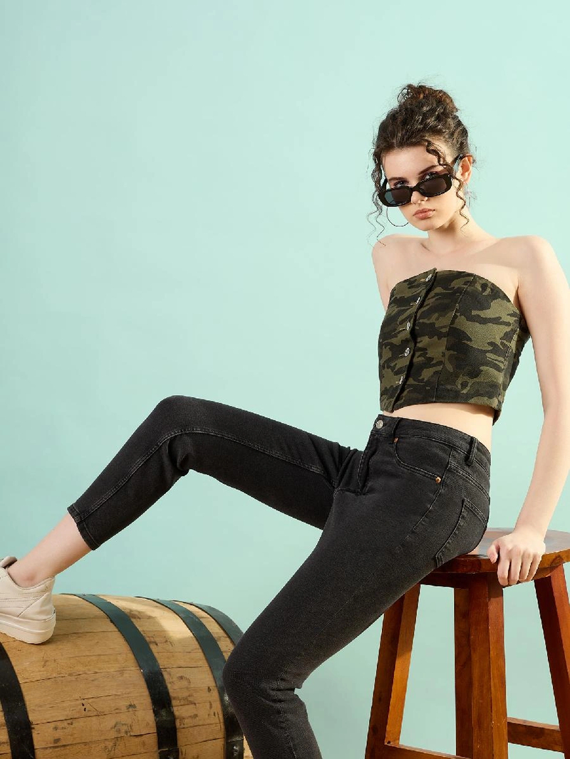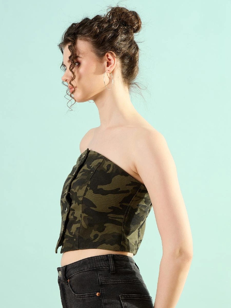 Product Details- Green crop regular top Abstract print Strapless, , no sleeves Woven Button closure Material & Care Pure Cotton Machine Wash Sleeve Length-Sleeveless Neck-Strapless Type-Regular Print or Pattern Type-Abstract Sleeve Styling-No Sleeves Transparency-Opaque Closure-Button Length-Crop Main Trend-New Basics Occasion-Casual Weave Type-Woven Number of Items-1