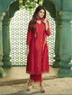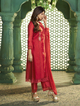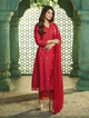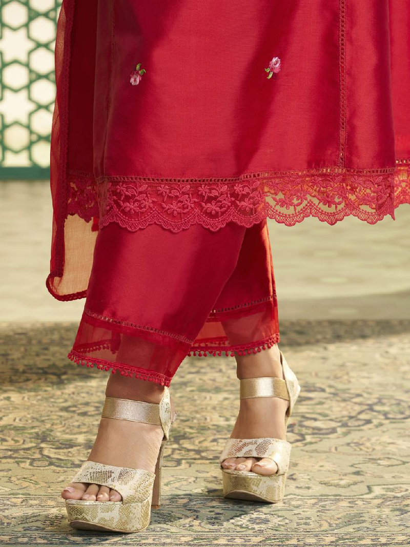 White floral A-line Kurta, round neck, calf length with straight hem & full sleeves, with lace detailing & floral plazzo elastic waistband with Lace details & also with lace tapping Dupatta.